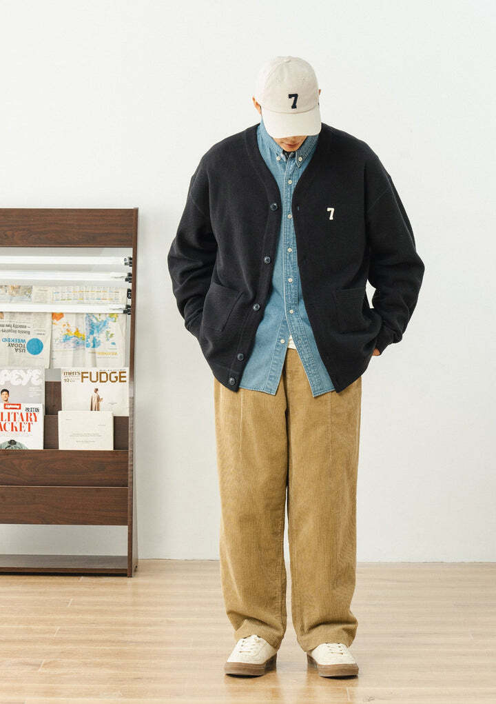 Number Logo knit Cardigan KN010は、洗練されたデザインが魅力のニットカーディガンです。柔らかなウールブレンド素材を使用しており、軽やかな着心地と優れた保温性を兼ね備えています。胸元にはスタイリッシュなロゴが施され、さりげないアクセントとして存在感を発揮します。