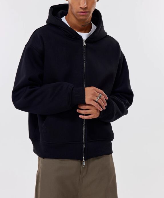 短丈ジップアップ/ パーカー/フーディ KN017は、カジュアルなスタイルを引き立てる一着です。ジップアップデザインが特徴的で、軽快さと動きやすさを実現しました。適度な短丈は、ボトムスとのコーディネートがしやすく、シーズンを問わず活躍するアイテムです。