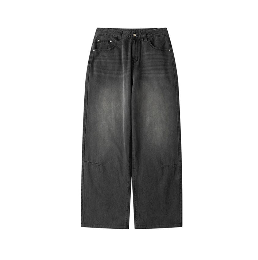 American retro ブラックストレート デニムパンツ KN027はトレンドのワイドシルエットが特徴的なブラックデニム。ヴィンテージ加工を施したグレーがかったブラックカラーが、こなれた雰囲気を演出します。ハイウエスト設計で脚長効果も抜群、程よいルーズ感のある裾周りが今どきのストリートスタイルを完成させます。