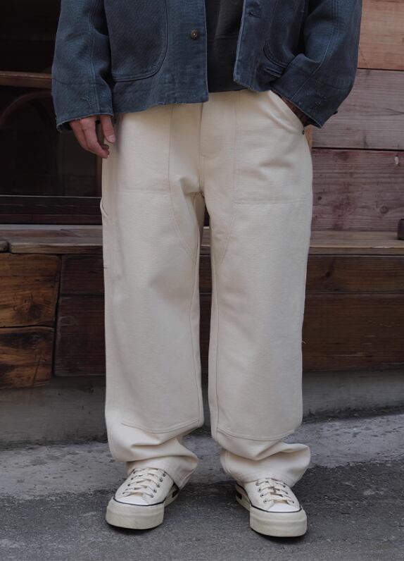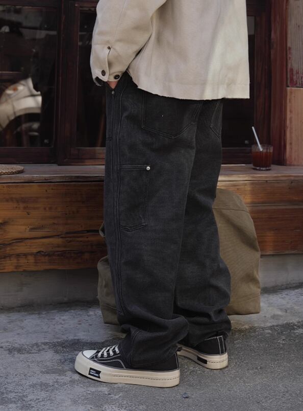 【460gヘビーウェイト】ウォッシュ加工 ルーズストレート ワークパンツ KN029