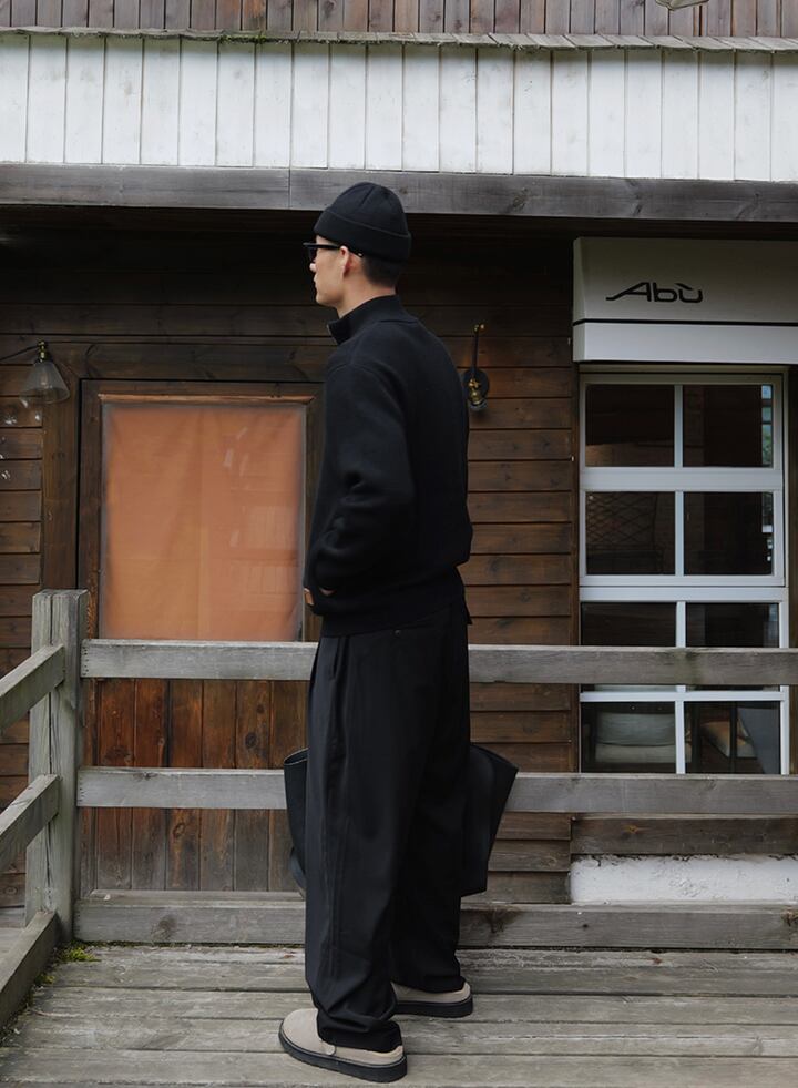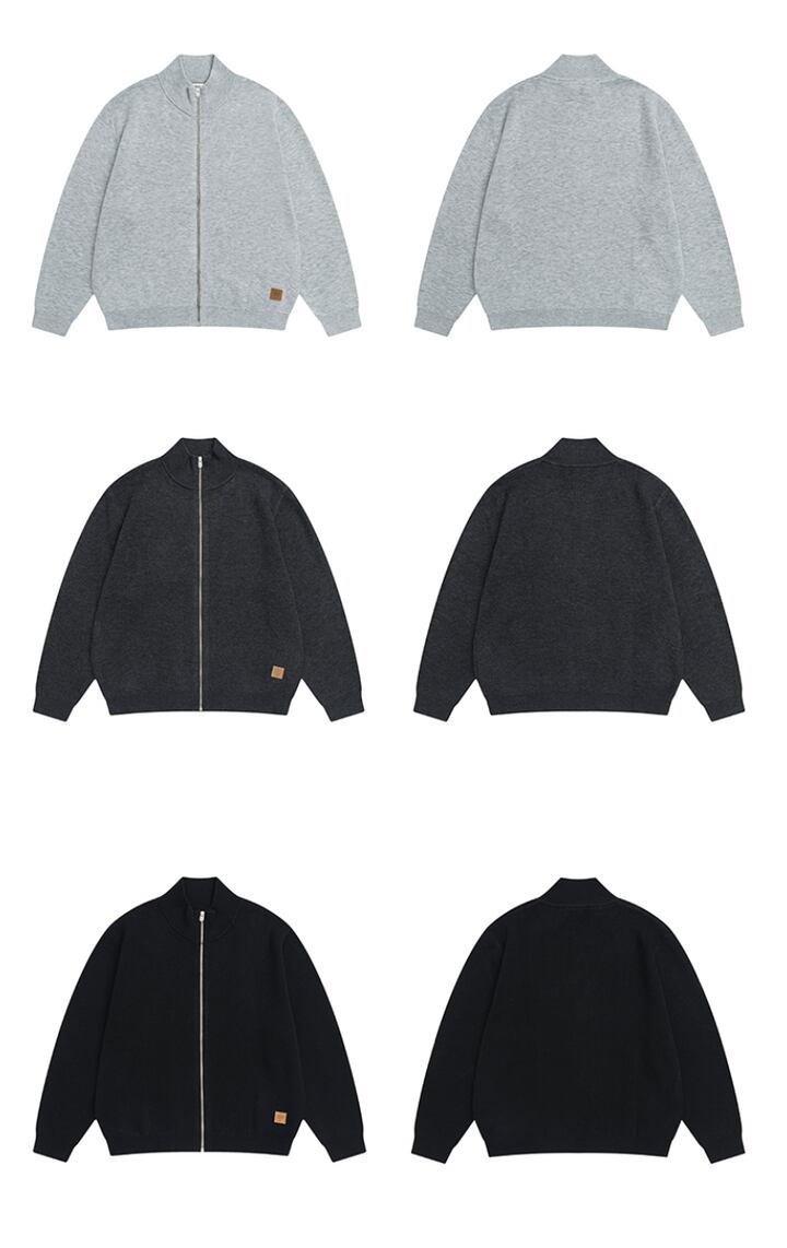 ウールブレンド・スタンドカラー・ニットジャケット KN030