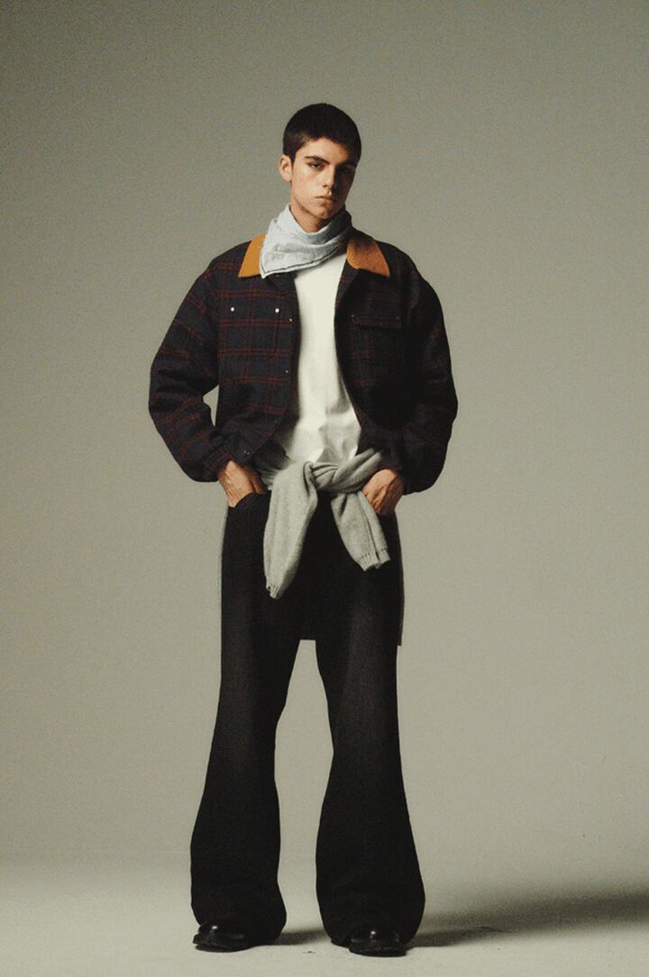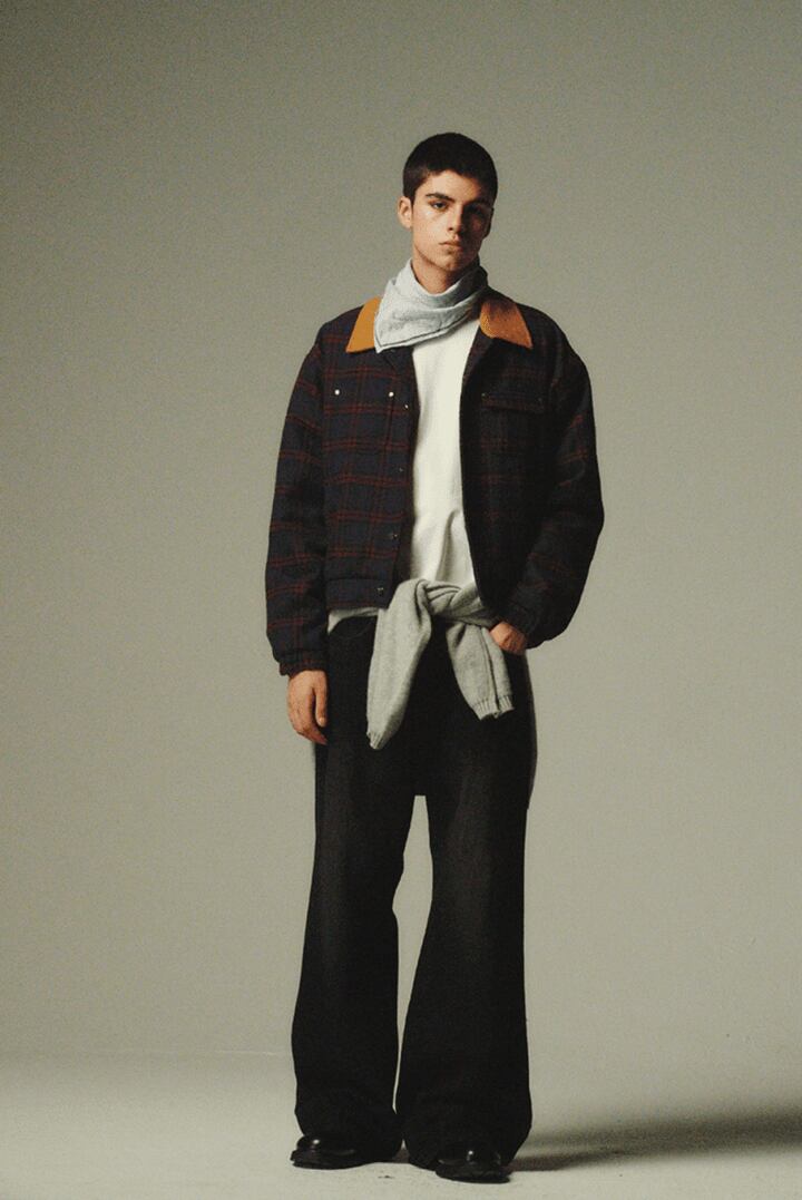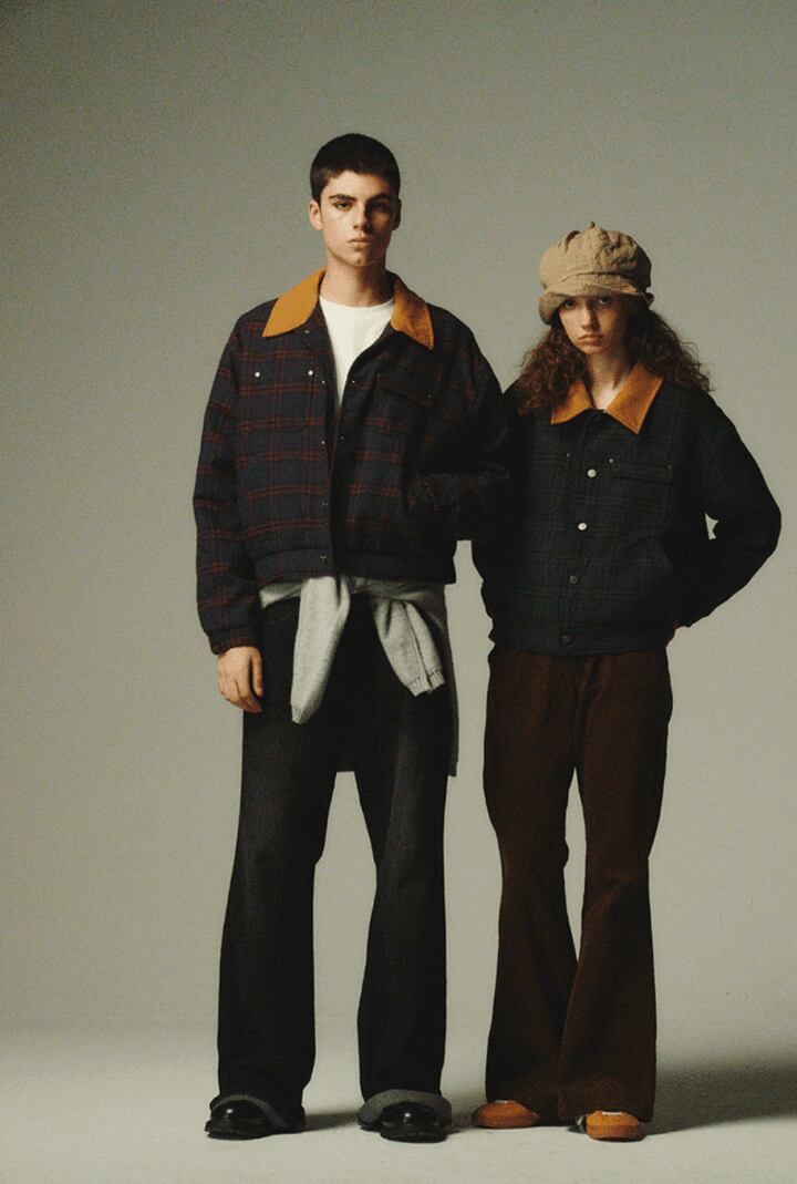 コーデュロイ襟付きクラシックチェックトラッカージャケットKN040