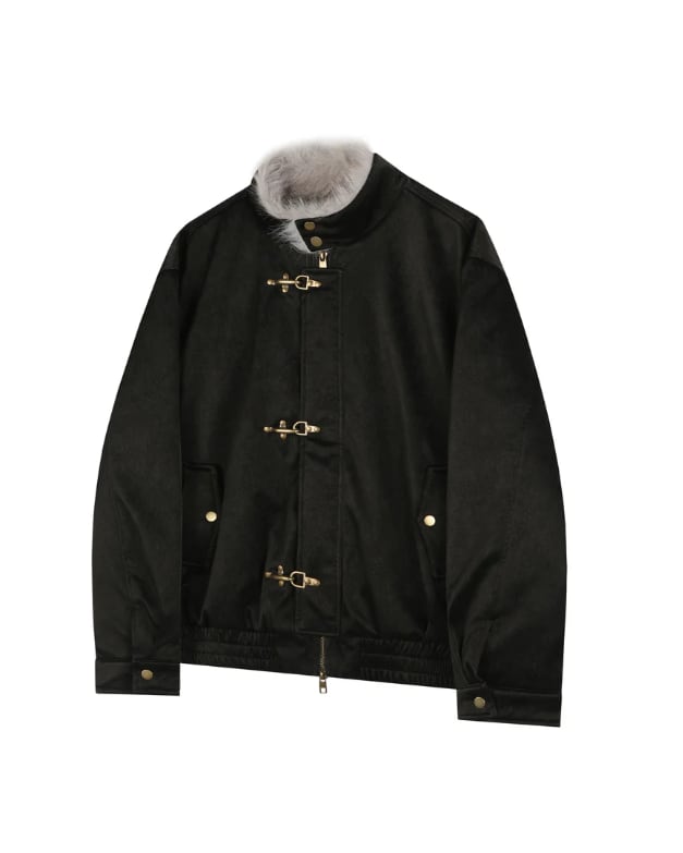染め先を強調したロングファー襟は、顔まわりを華やかに魅せつつ、冬の冷気をしっかり遮断。前立てには飛行機バックルとジップを組み合わせ、デザイン性と実用性を高次元に融合しています。