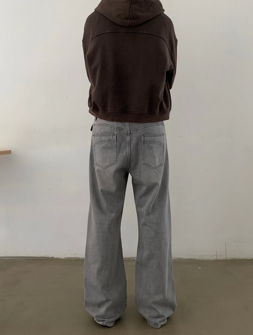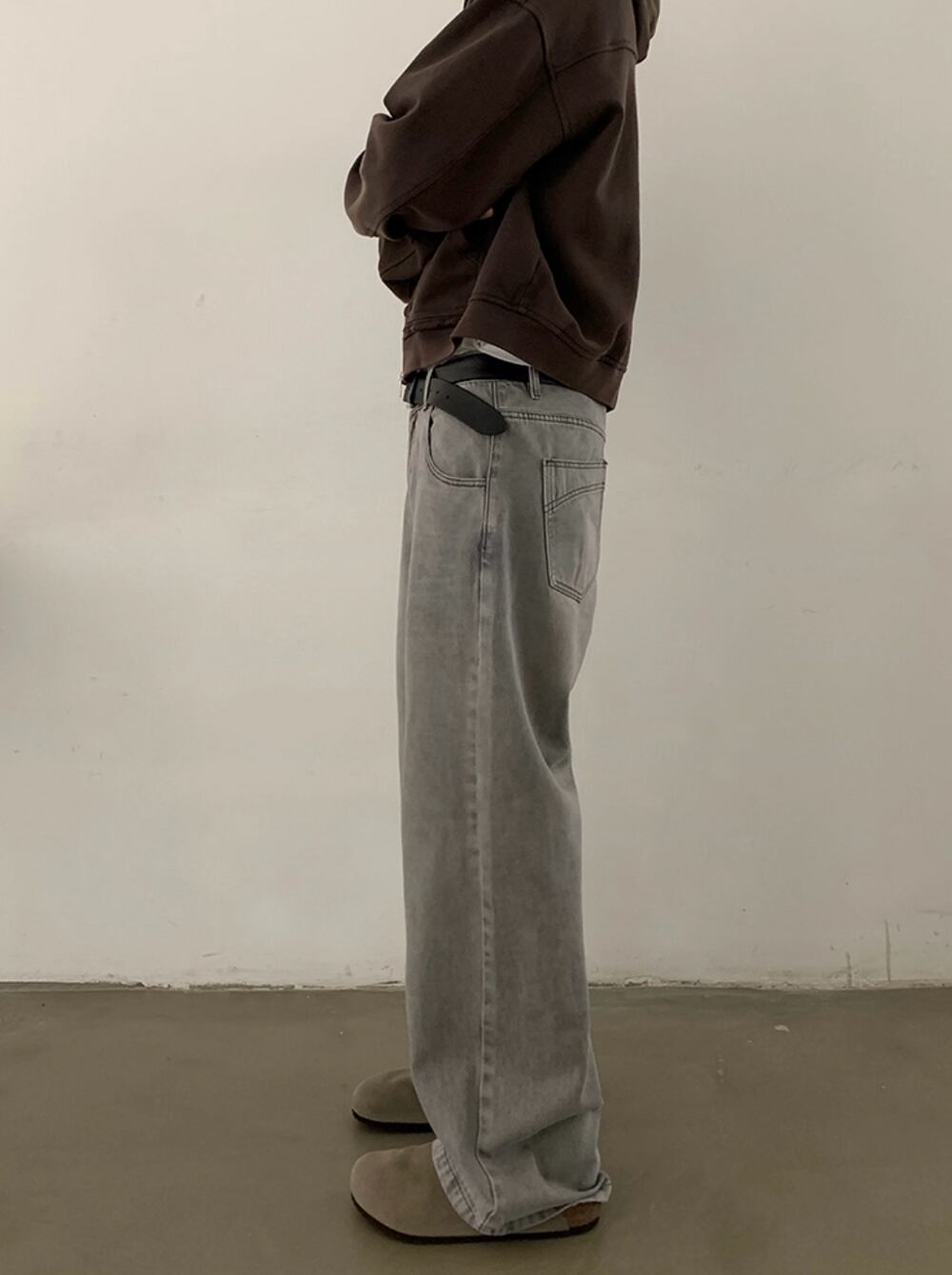 腰回りから裾まで、ストンと真っ直ぐに落ちるワイドストレート。