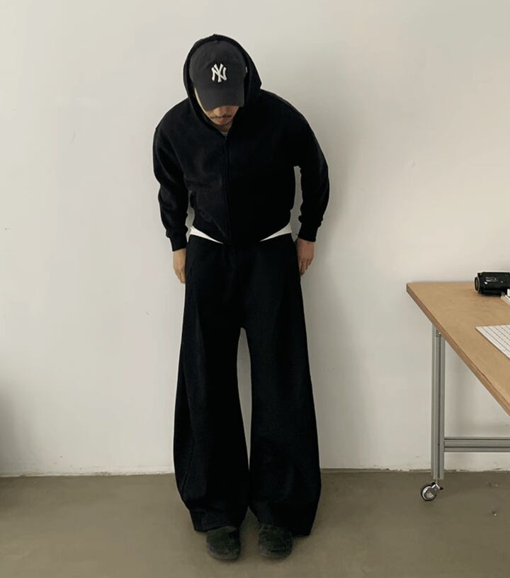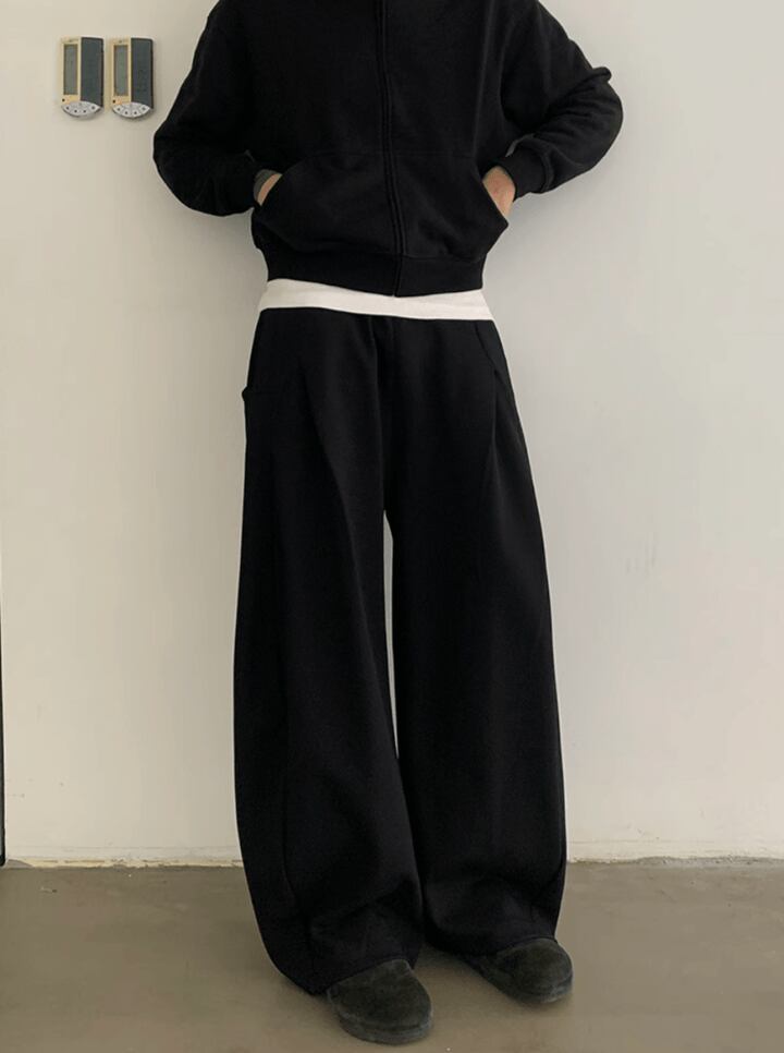 立体的なカーブラインが特徴の、バルーンシルエットスウェットパンツ。