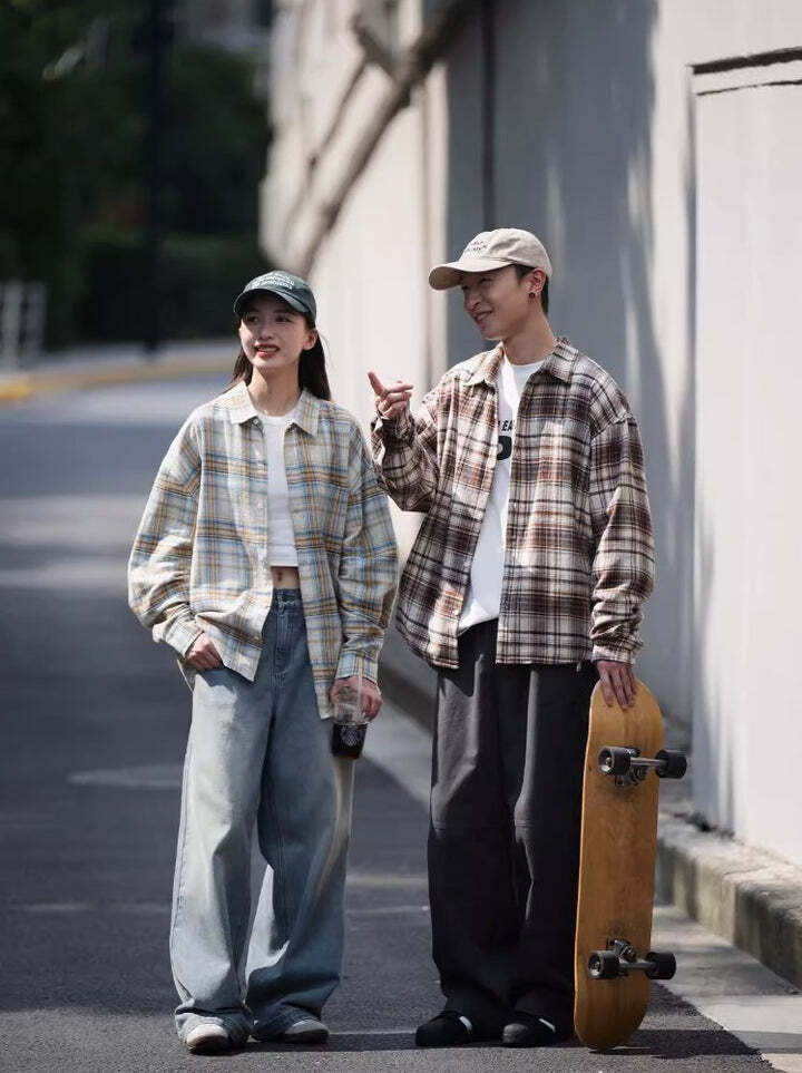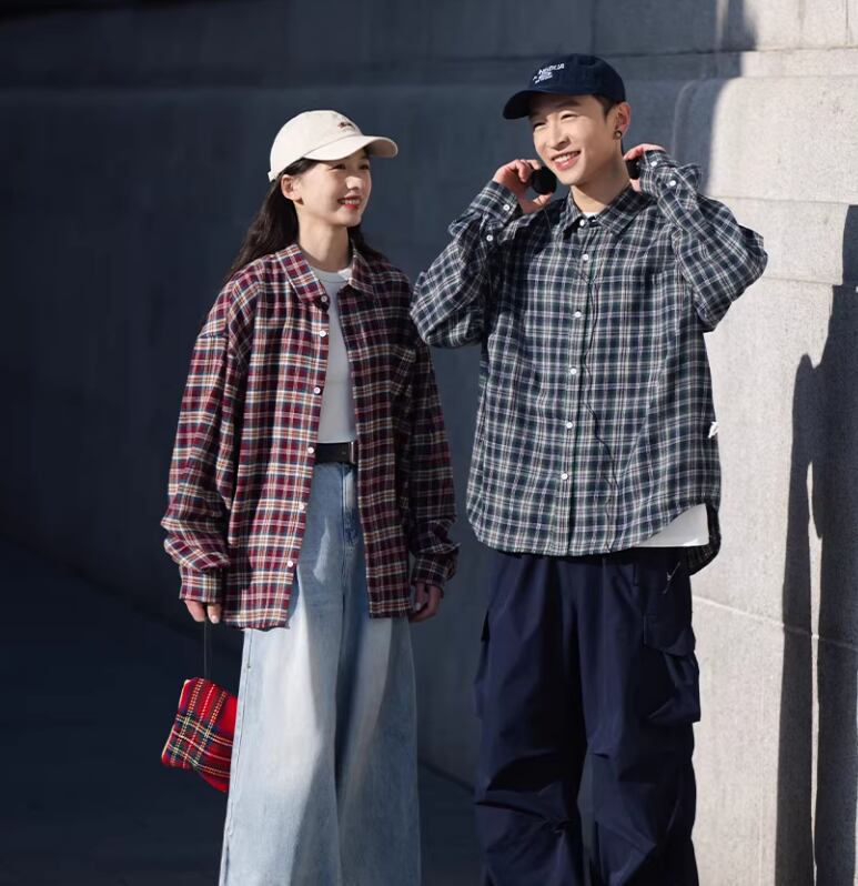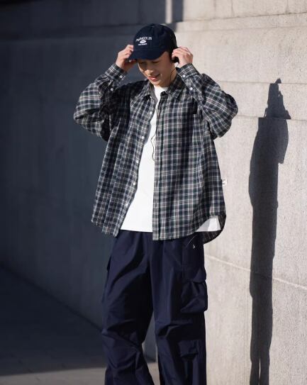 落ち着いた配色のチェック柄は、派手すぎず取り入れやすいバランス。デニムやワイドパンツはもちろん、スラックスと合わせても違和感なくまとまります。