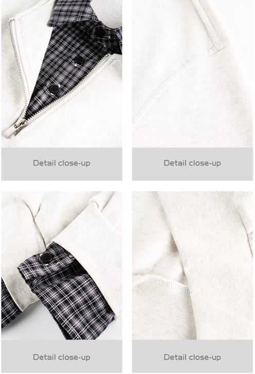 襟元と袖口からチェックシャツがのぞくデザインで、1枚でレイヤードスタイルが完成します。