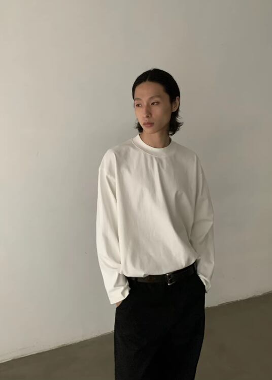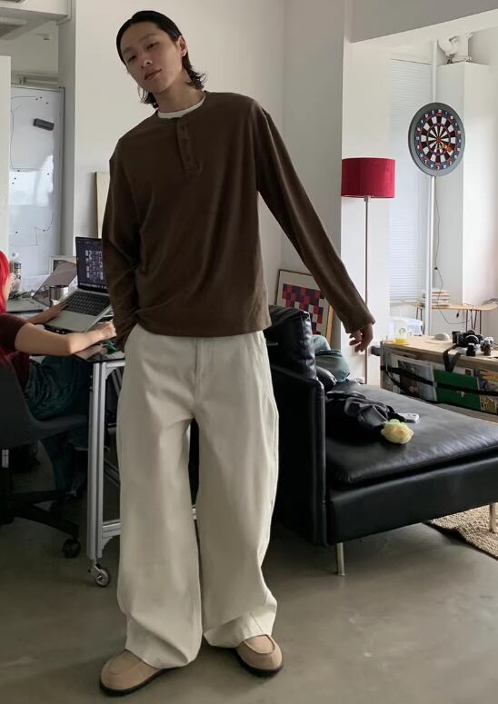 ・ヘンリーネックロンT × レザーシューズ