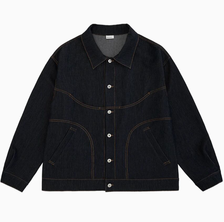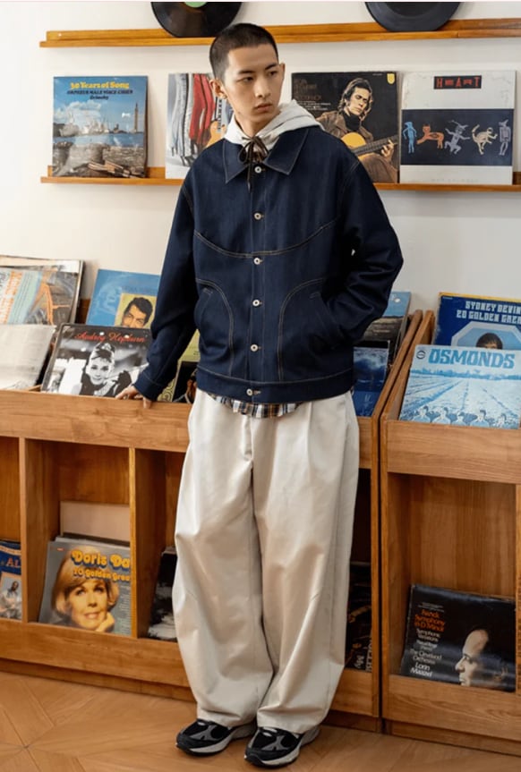 ・黒ヘンリーネック × ワイドデニム → デニムonデニムの旬スタイル