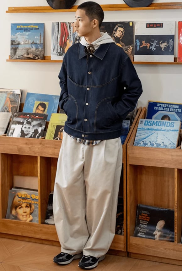 ・グレースウェット × カーゴパンツ → ワークジャケットで締めるストリートスタイル