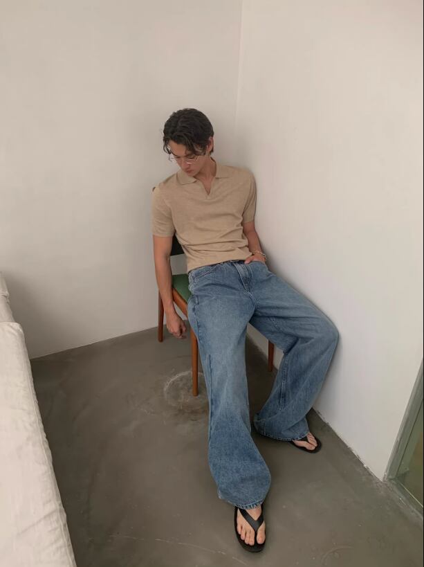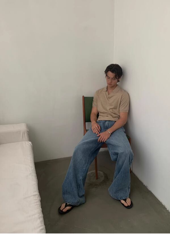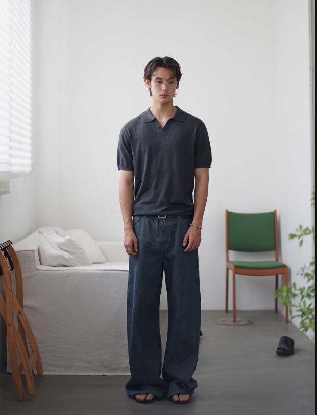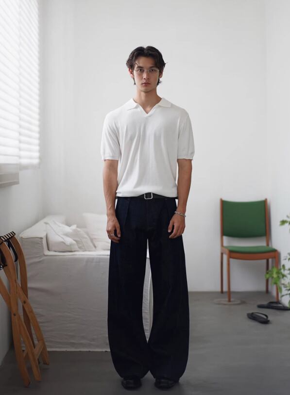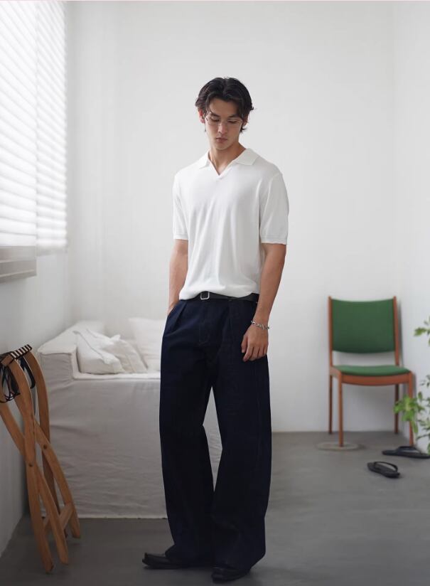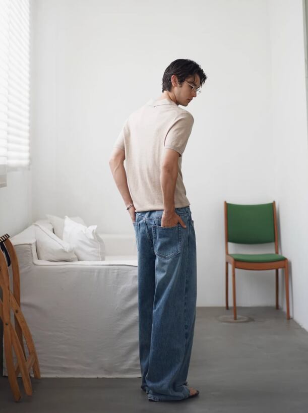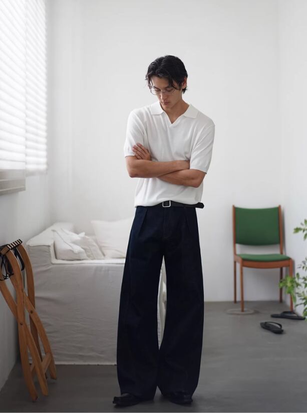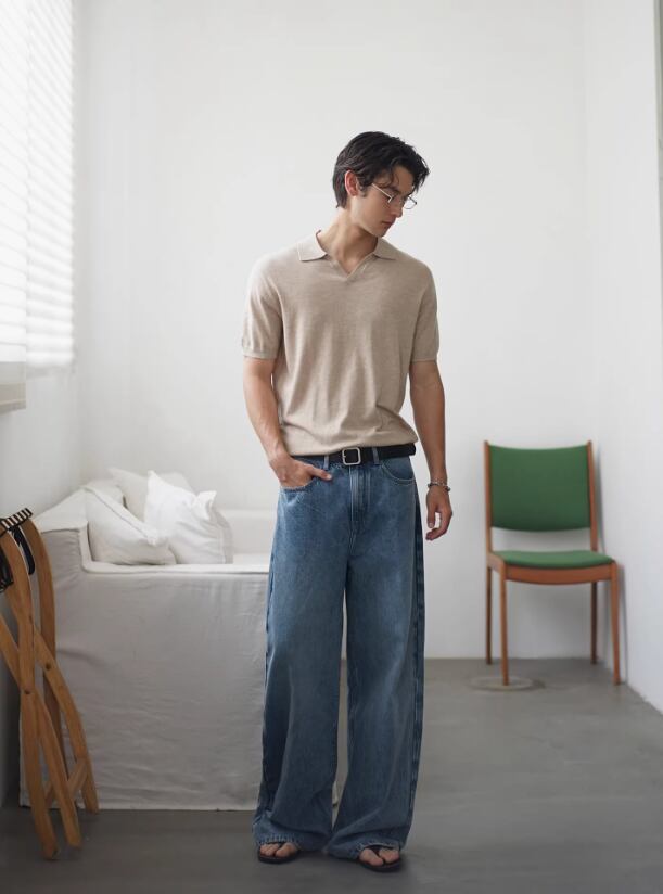 ・ワイドデニム × レザーベルト → 大人のクリーンカジュアル
