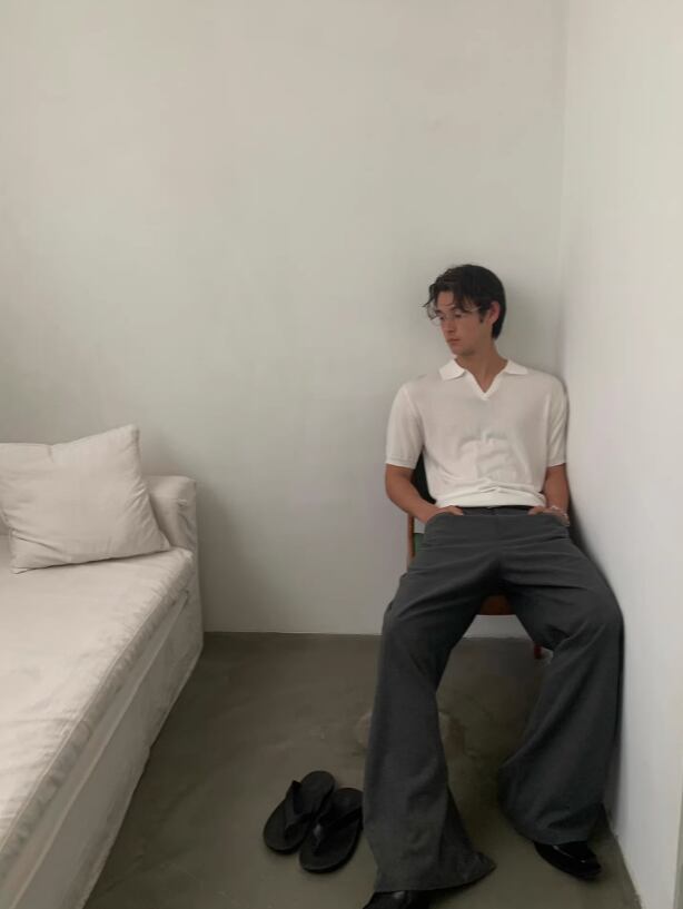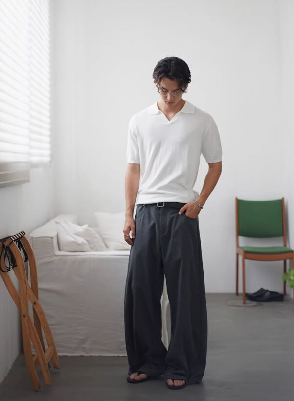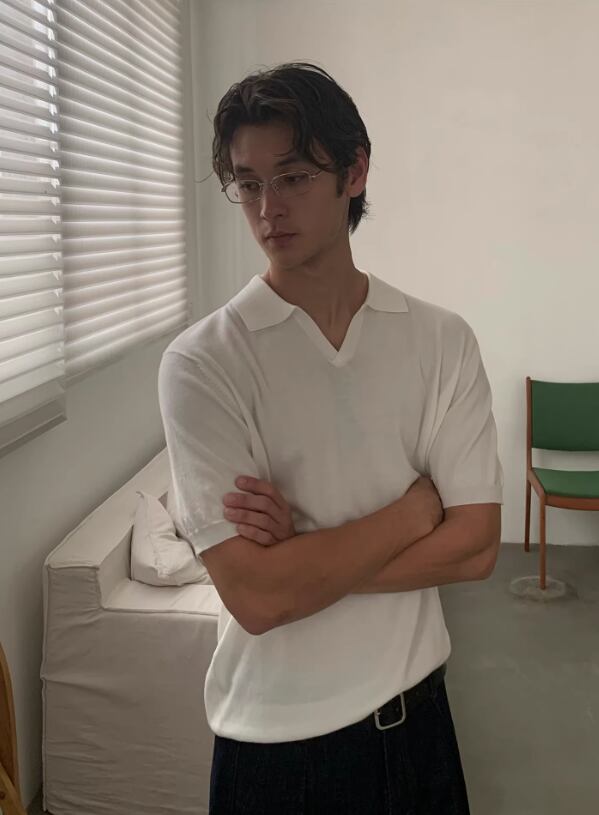 ・オープンカラー(開き衿)× Vネック