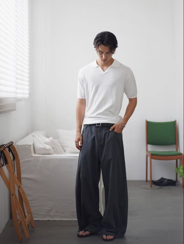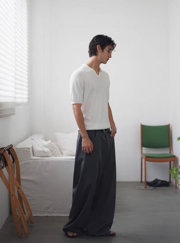 オープンカラー・ニットポロシャツ KN087