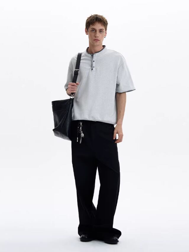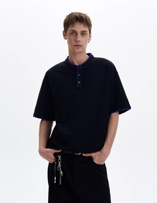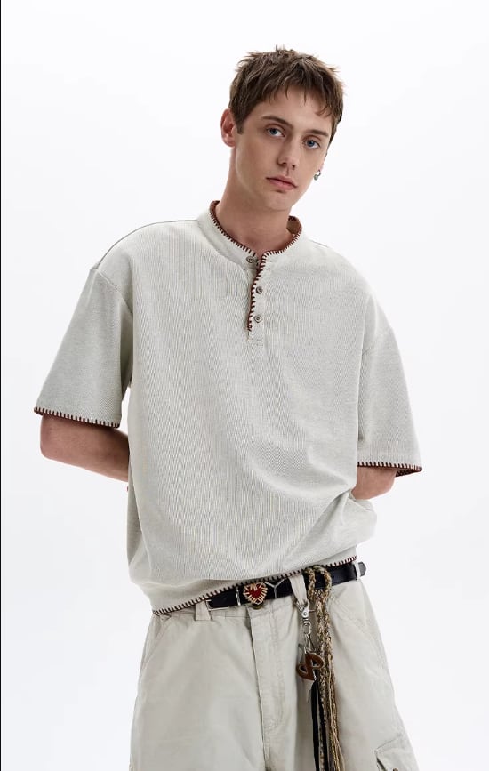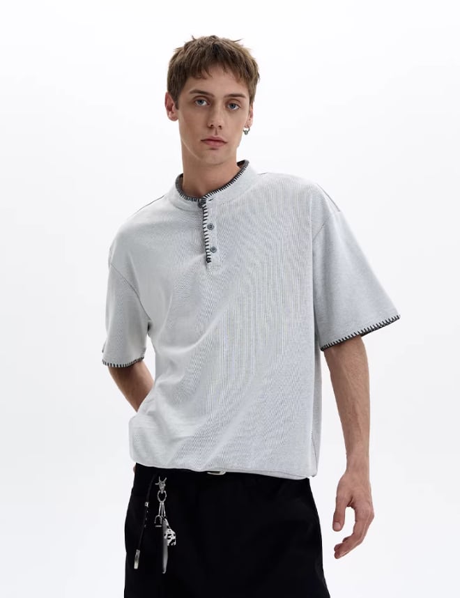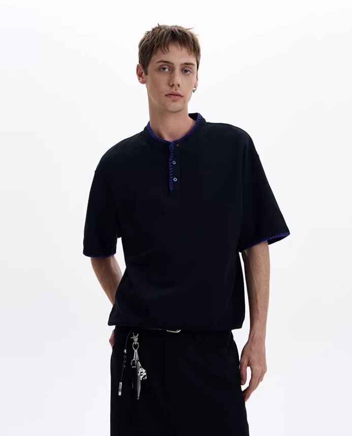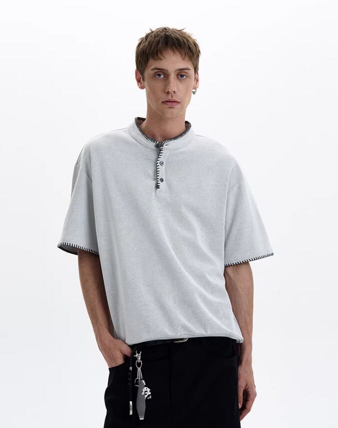 ハンドステッチ・ヘンリーネックTシャツ / KN090