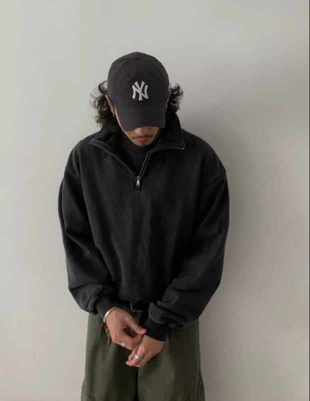 430G ヴィンテージウォッシュ・ハーフジップスウェット / KN094