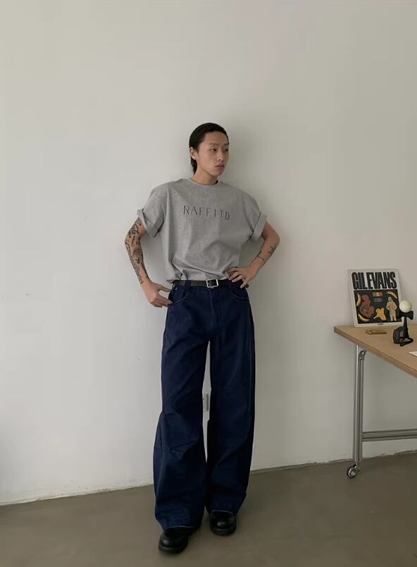 ・ワイドデニム × スニーカー → ヘビーTで仕上げるシンプルクリーンスタイル