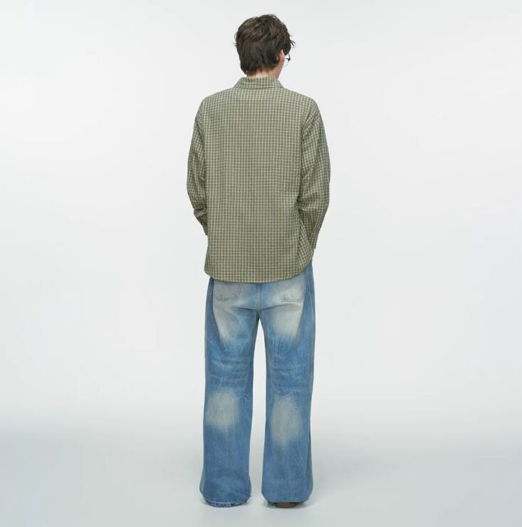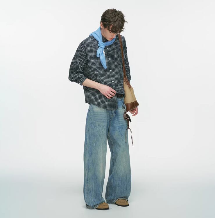 ・白Tシャツ(レイヤード)× ワイドデニム → 開けて羽織るチェックシャツの王道スタイル