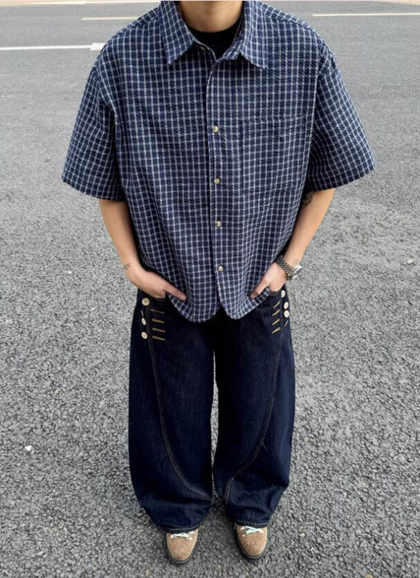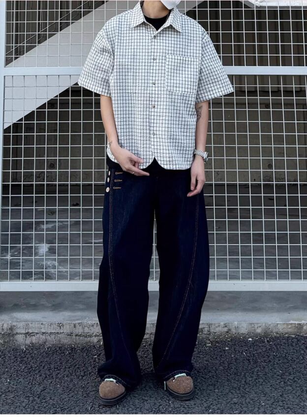 ・白Tシャツ(レイヤード)× ワイドデニム → 開けて羽織る夏の王道スタイル