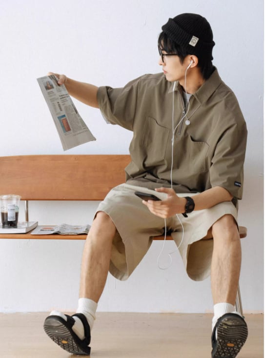 ・ワイドデニム × スニーカー → ナイロンシャツで格上げするクリーンカジュアルスタイル