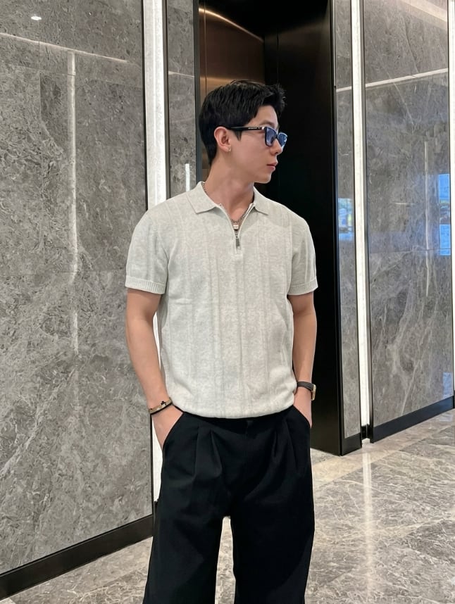 ハーフジップ×ポロカラーの組み合わせが